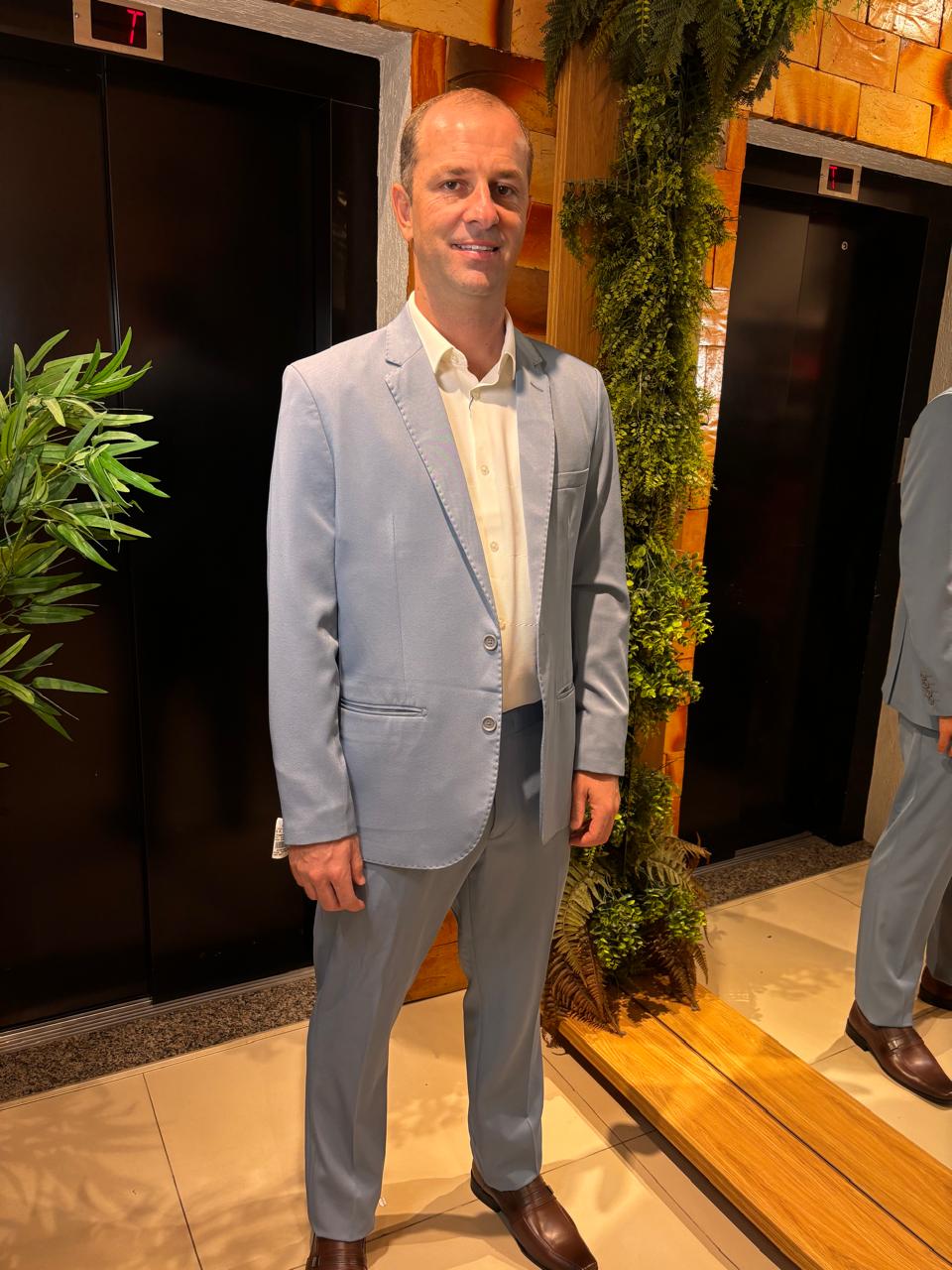Terno em alta alfaiataria com corte semi-slim e pontilhados delicados na gola, apresentado na cor azul claro, transmitindo elegância e exclusividade. Seu acabamento sofisticado e design refinado garantem presença marcante em ocasiões especiais.